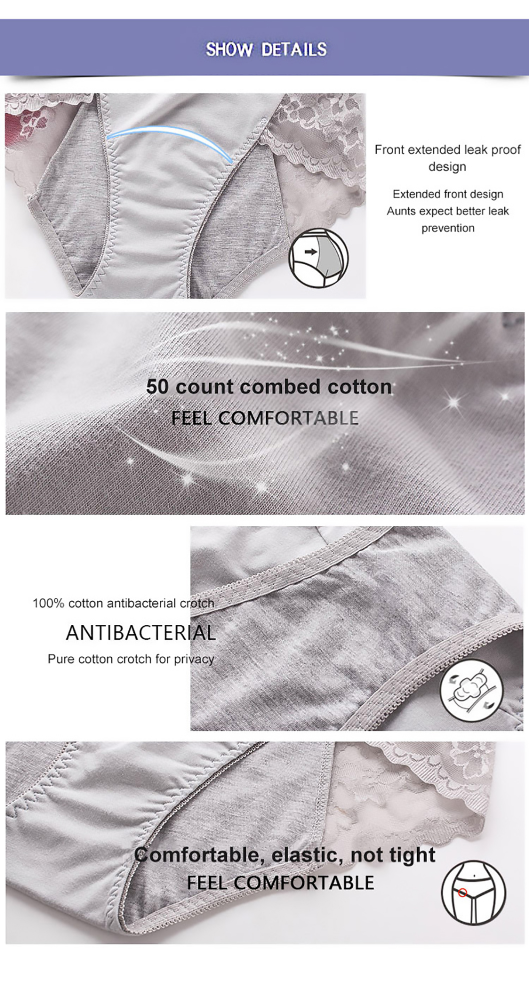 2. Genießen Sie den weichen Griff: 100 % Baumwolle. Auslaufsicheres Futter. Nützlicher Schutzslip, leicht zu reinigen.