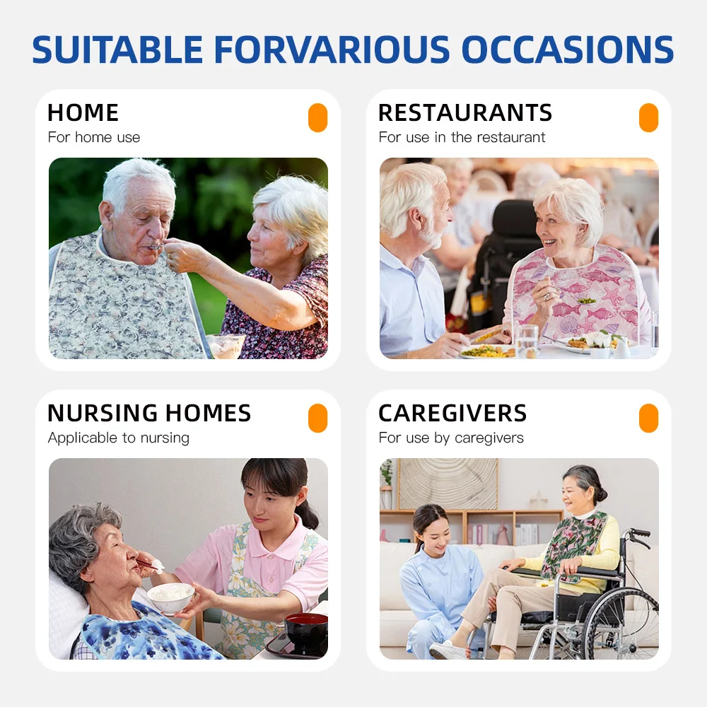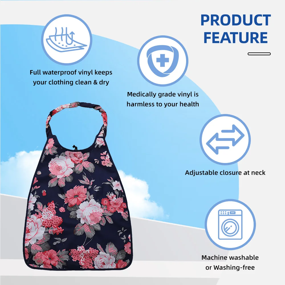 Lätzchen für Erwachsene, wiederverwendbar, wasserdicht, waschbar, Schutz für Esskleidung, verstellbar, robust, langlebig, modisch, latexfrei