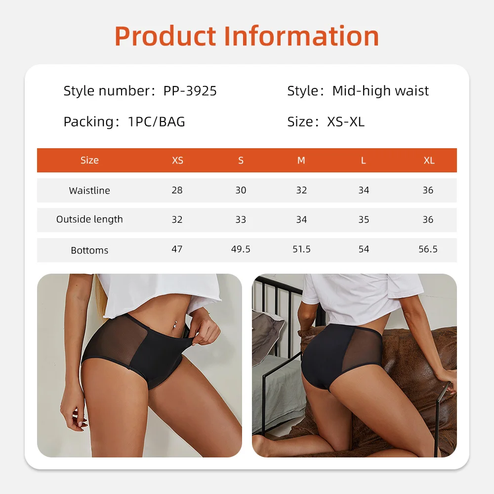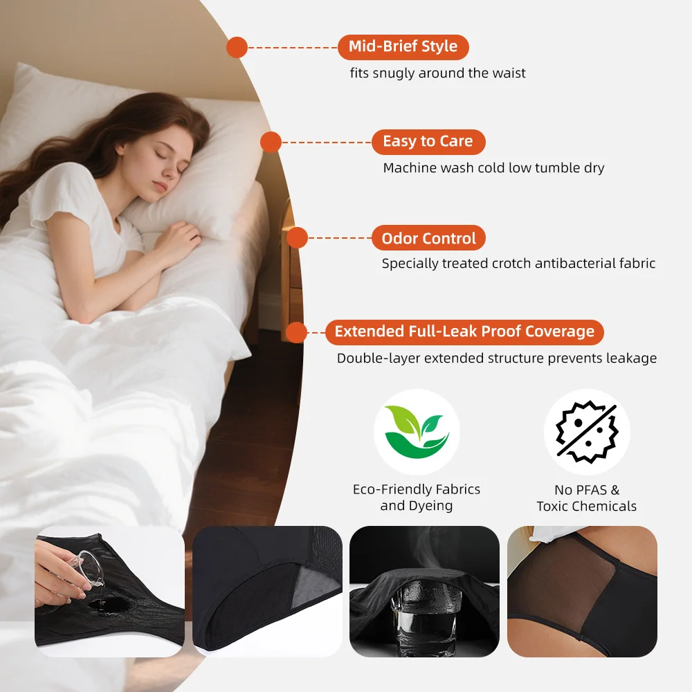 Menstruationsunterwäsche mit mittelhohem Bund, hochgeschnitten, wiederverwendbar, für jeden Tag, mit Logo am Bund, atmungsaktiv, saugfähig, hochwertig, mit Logo, Kundenservice, aus Modalmaterial, verschiedene Größen, auch für Erwachsene geeignet.