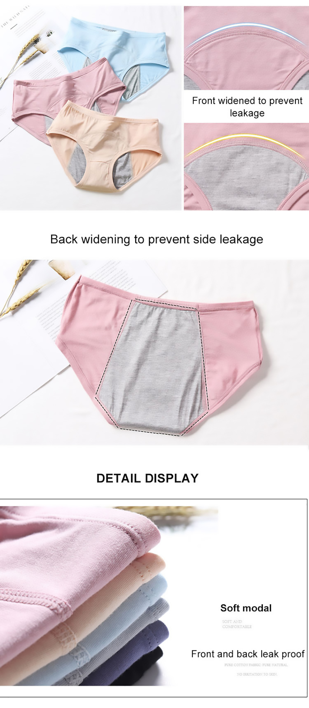 2. Genießen Sie die sanfte Berührung: Modal. Auslaufsicheres Futter. Nützlicher Schutzslip, leicht zu reinigen.