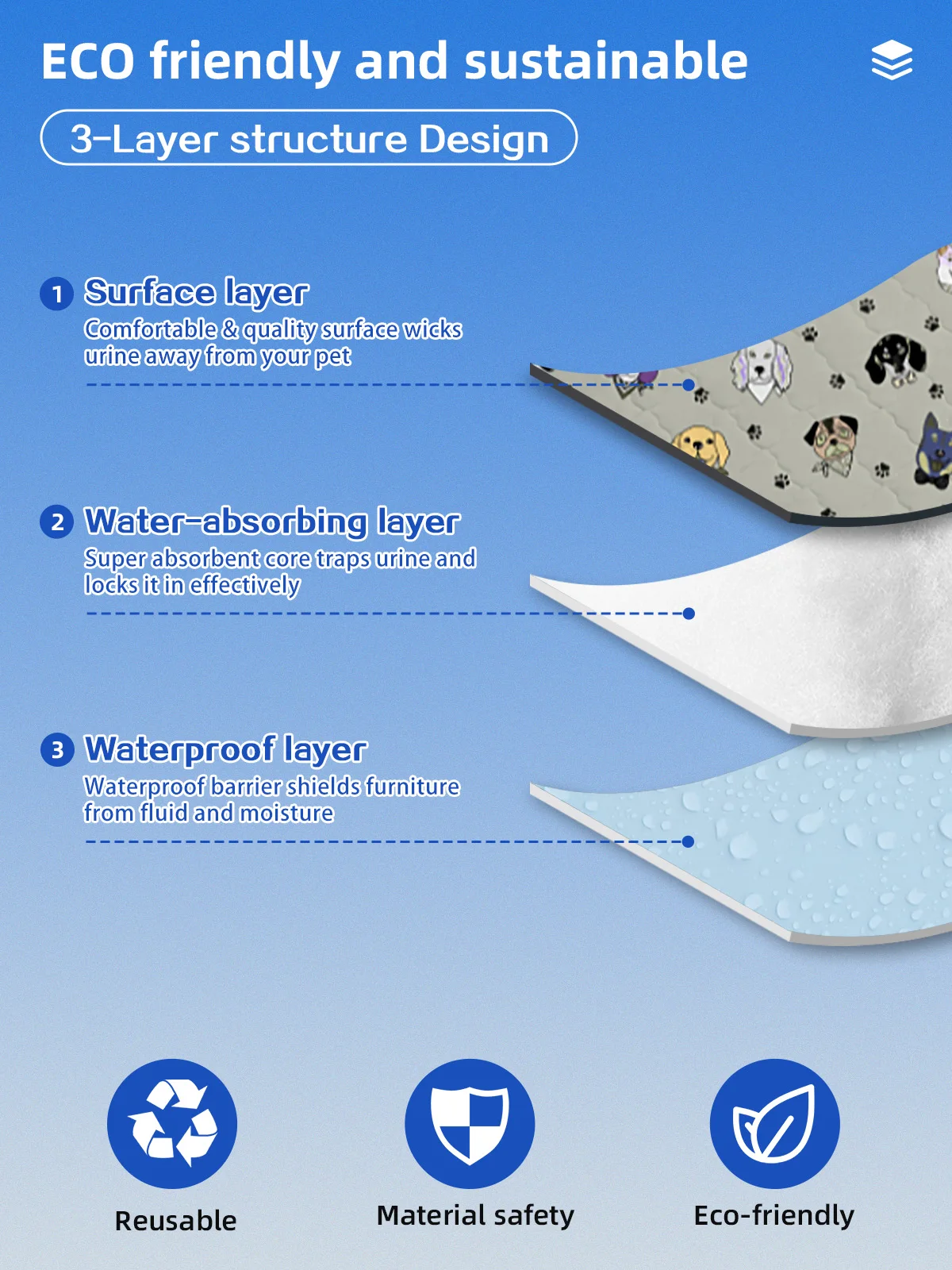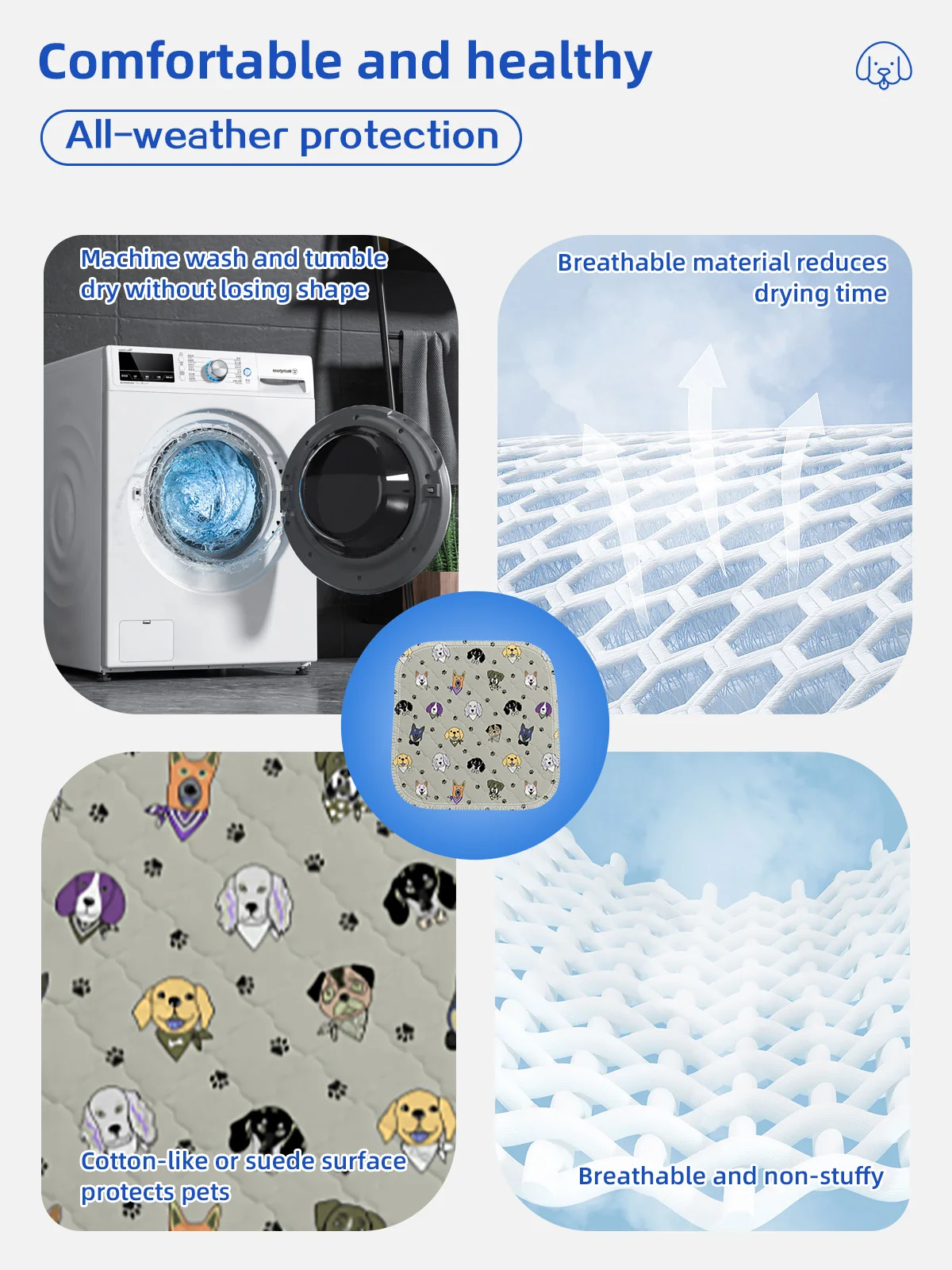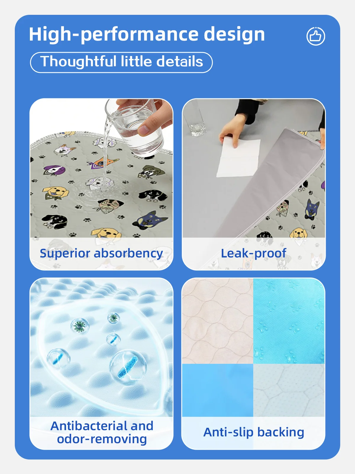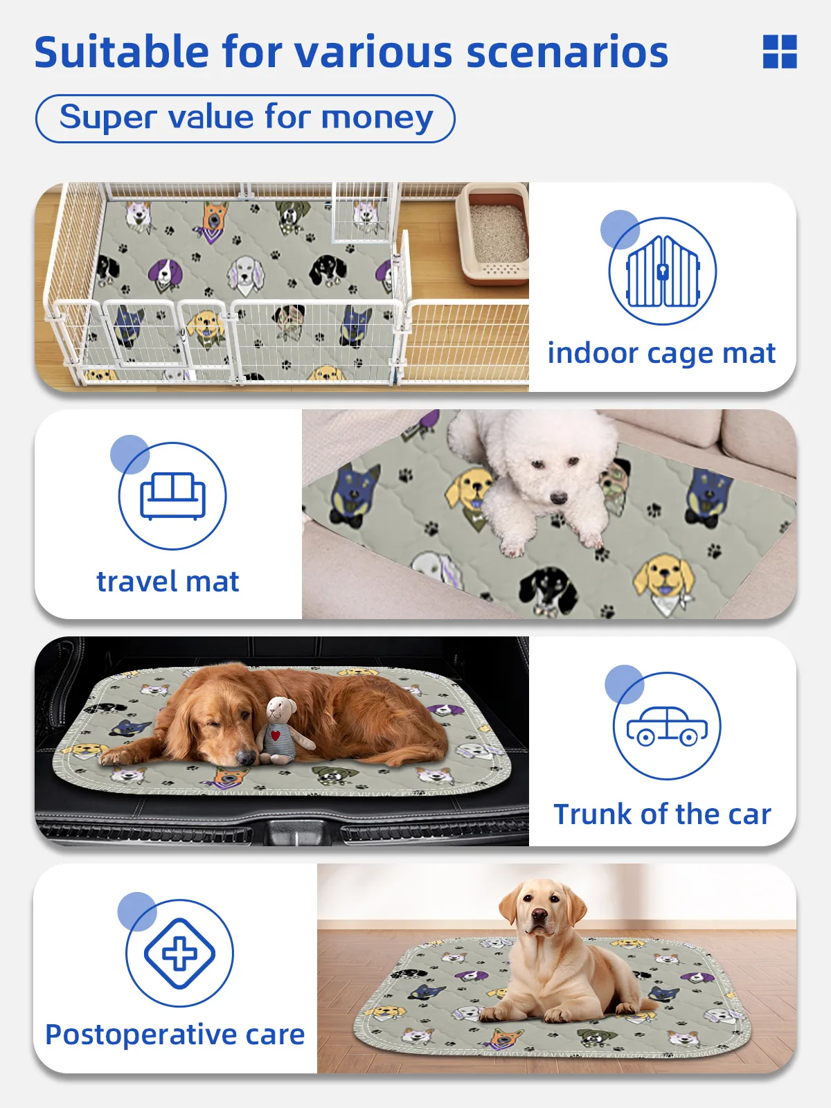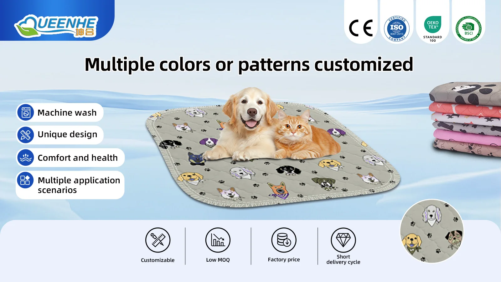 Benutzerdefinierte Muster Wasserdichte, rutschfeste Pet Pads in mehreren Größen Wiederverwendbare waschbare Pet Pee Pads